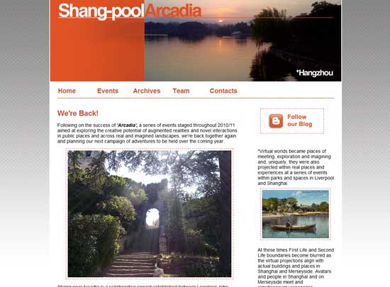 Shang-pool Arcadia is a collaborative project established between Liverpool John Moores University, the University of Shanghai and the University of Salford. Drawing on expertise and research from both science and art faculties within these universities our projects take aspects of public parks and urban spaces in Shanghai and Merseyside and create virtual and augmented Arcadia's which explore the park as an idealised landscape.