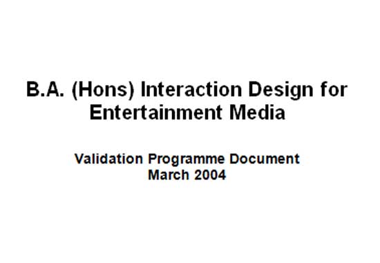 In 2004, I was asked to develop a new BA programme in interactive media design. I wrote the course documentation and led the team in validation process. I also taught on the course over several years.