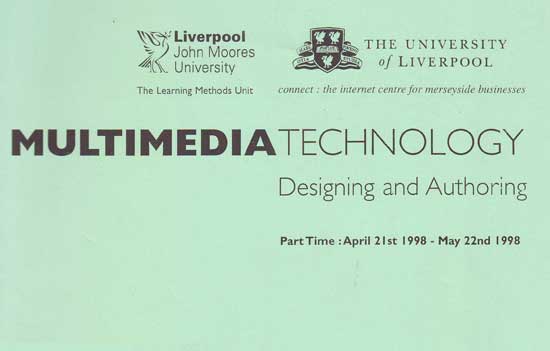 From 1997 through to 2002, the Learning Methods Unit worked on a collaborative project with the University of Liverpool (CONNECT) to deliver a part-time course in multimedia design and production. I edited the course documentation for all six modules as well as writing and delivering large sections of the course materials.